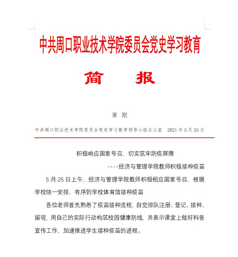 积极响应国家号召,切实筑牢防疫屏障----经济与管理学院教师积极接种疫苗