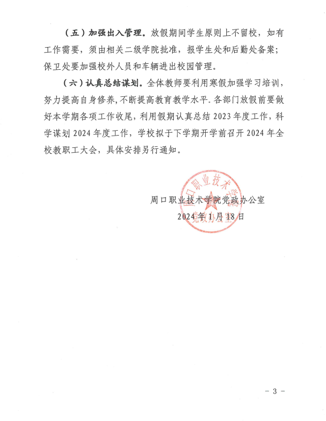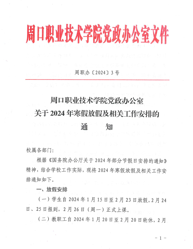 伟德体育党政办公室关于2024年寒假放假及相关工作安排的通知