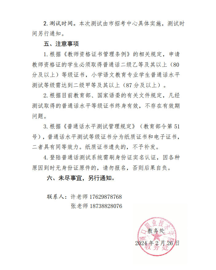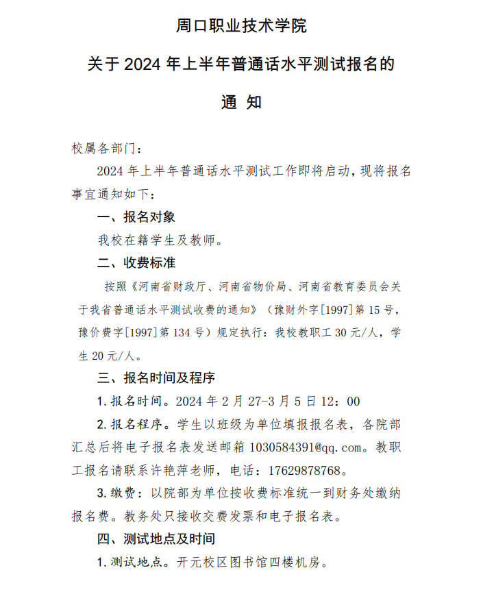 伟德体育关于2024年上半年普通话水平测试报名的通知