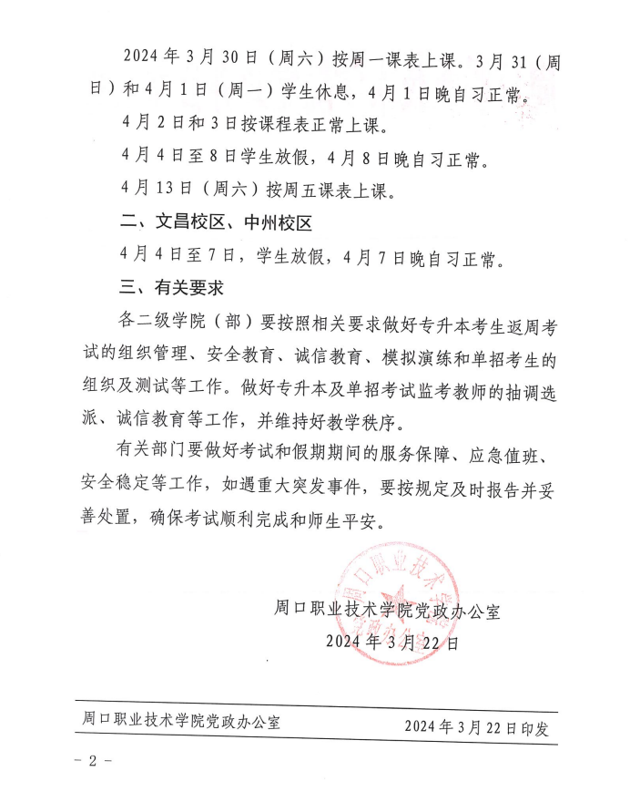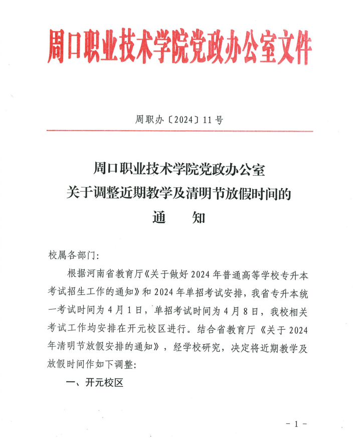 伟德体育党政办公室关于调整近期教学及清明节放假时间的通知