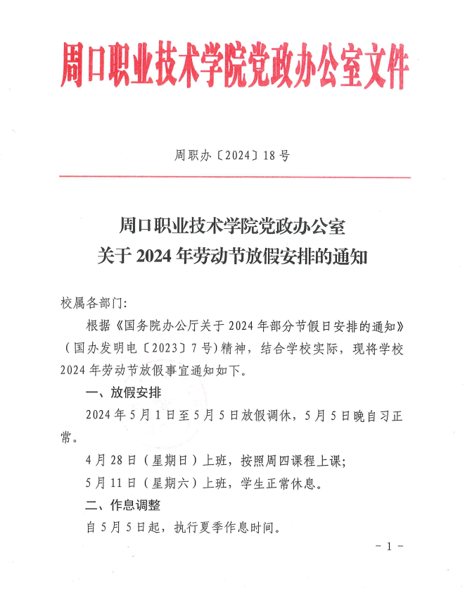 伟德体育党政办公室关于2024年劳动节放假安排的通知