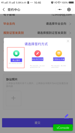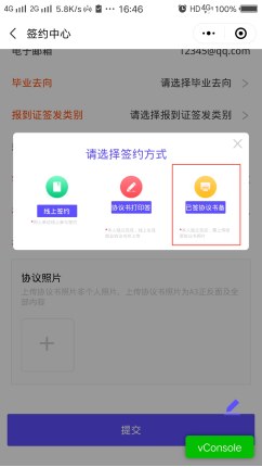 就业类别选择【签就业协议形式就业】-【已签协议书备案】,上传协议书照片,点击【确认签约】提交审核。