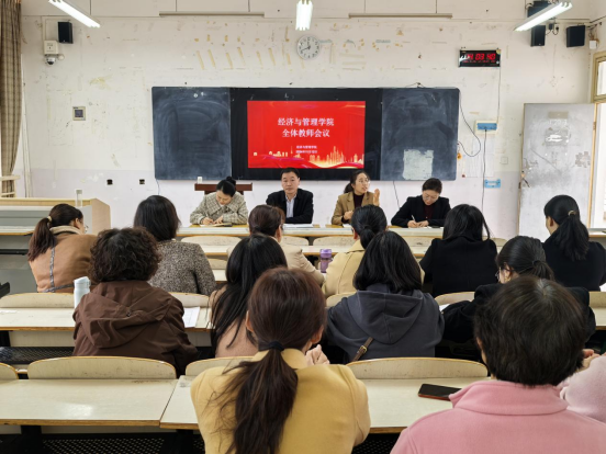 为确保学院各项工作平稳、有序开展,11月12日下午,经济与管理学院在4203教室召开全体教师大会,会议由院长袁向华主持。