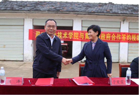 于爱霞、郭涛代表双方签订产教融合校地合作协议。