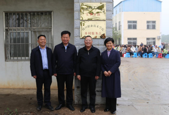 于爱霞、王建党共同为伟德体育校外实训基地和乡村服务点揭牌,出席领导合影留念。