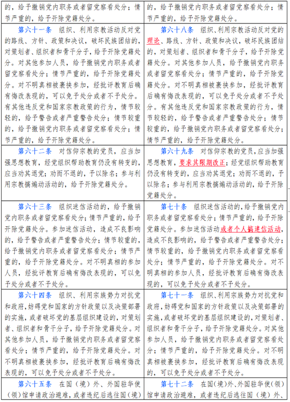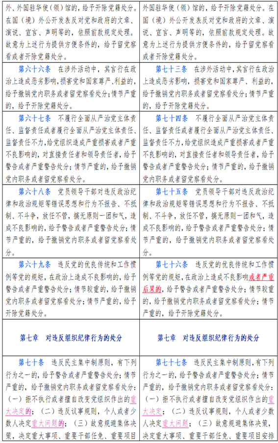 中国共产党纪律处分条例新旧对比天天学习材料八