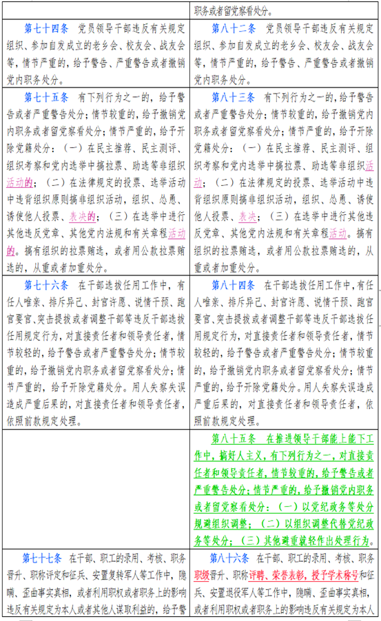 中国共产党纪律处分条例新旧对比天天学习材料九