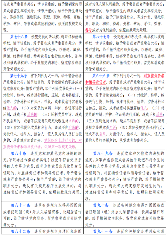 中国共产党纪律处分条例新旧对比天天学习材料十一