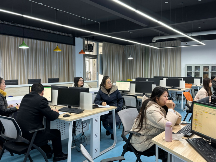 为提升教学技能,提高教学质量,强化学习共同体,经济与管理学院于12月12日上午开展集体听课活动。经济与管理学院书陈鹏、院长袁向华带领四位教研室主任和多名骨干教师到图书馆三楼智能财税实训室听取郭淑君老师《成本会计》课程。