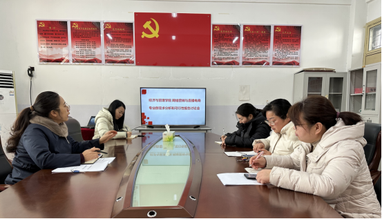 会上,袁向华院长首先转达了教务处对经济与管理学院教学质量年报的修改意见,提出各教研室主任根据修改意见修改相关材料。其次,强调专业群建设的必要性和重要性,各教研室主任根据经管学院的目前条件及周口市的经济环境,对网络营销与直播电商专业群建设提出可行性的建议。