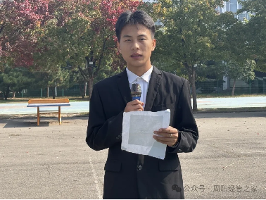随着主持人牛妙珂同学清脆而有力的声音响起,升旗仪式正式开始。在雄壮的国歌声中,鲜艳的五星红旗缓缓升起,全体师生肃立,向国旗行注目礼。升旗仪式结束后,学生代表曹群鹏同学上台发言。他谈到校园消防安全的重要性:“作为新时代的大学生,有责任、有义务提高消防安全意识,学习并掌握基本的消防安全知识。”紧接着,陈鹏书记首先对全体师生在消防安全方面的努力表示肯定,然后强调了消防安全在校园安全中的重要地位:“消防安全是校园安全的重要组成部分,它关系到我们每一个人的学习和生活环境。我们必须时刻保持警惕,加强消防安全教育和演练,确保在紧急情况下能够迅速、有效地应对。”
