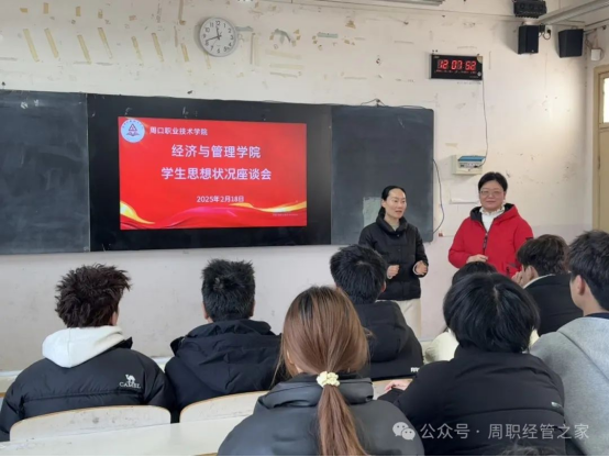 为进一步加强学生心理健康教育,提升心理健康教育工作质量,促进学生健康成长,经济与管理学院于2月18日在4203教室举办了心理健康座谈会。副院长郑文娟、学管办主任杨璐璐以及23级、24级学生代表参加了会议。会议由学管办主任杨璐璐主持。