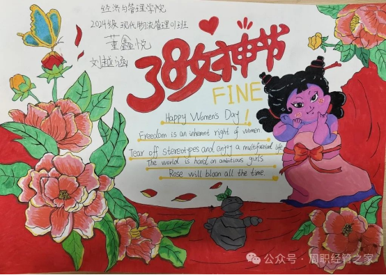 为庆祝第115个“三八”国际劳动妇女节,丰富校园文化生活,展现新时代女性风采,3月8日,经济与管理学院举办了相关主题的手抄报活动。