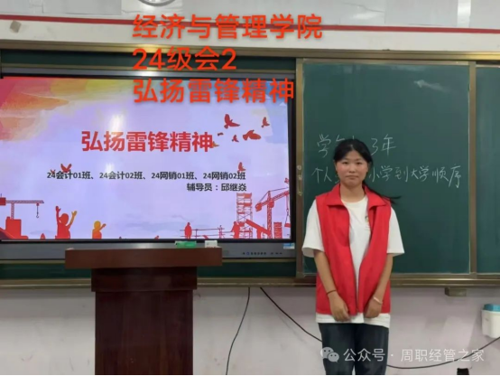 此次“学习雷锋精神”主题班会不仅让同学们深刻领悟了雷锋精神的时代内涵,更激发了大家践行奉献、服务社会的热情。相信在未来的学习和生活中,经济与管理学院的学子们将以雷锋为榜样,积极参与志愿服务,弘扬助人为乐的美德,为营造和谐校园、构建美好社会贡献自己的力量,让雷锋精神在新时代焕发出更加耀眼的光芒。