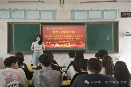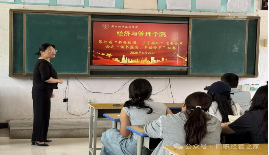 为营造浓厚的阅读氛围,促进思想交流与知识共享,经济与管理学院于4月29日举办了第七届“书香校园、芬芳周职”读书分享会之“读书盛宴、幸福分享”初赛。本次比赛由党总支书记陈鹏、副院长郑文娟、副院长杨文贞担任评委,由副院长郑文娟主持。