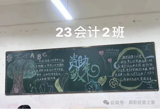 同学们踊跃报名,组建团队或独立创作。每位同学都充分发挥创意,在黑板报中融入丰富内容。有的用生动插画展现资助政策带来的帮助,有的列举诚信还贷的正面案例,还有的分享受资助后的成长故事。这些作品不仅色彩鲜艳、排版精美,更传递出感恩、诚信的正能量。